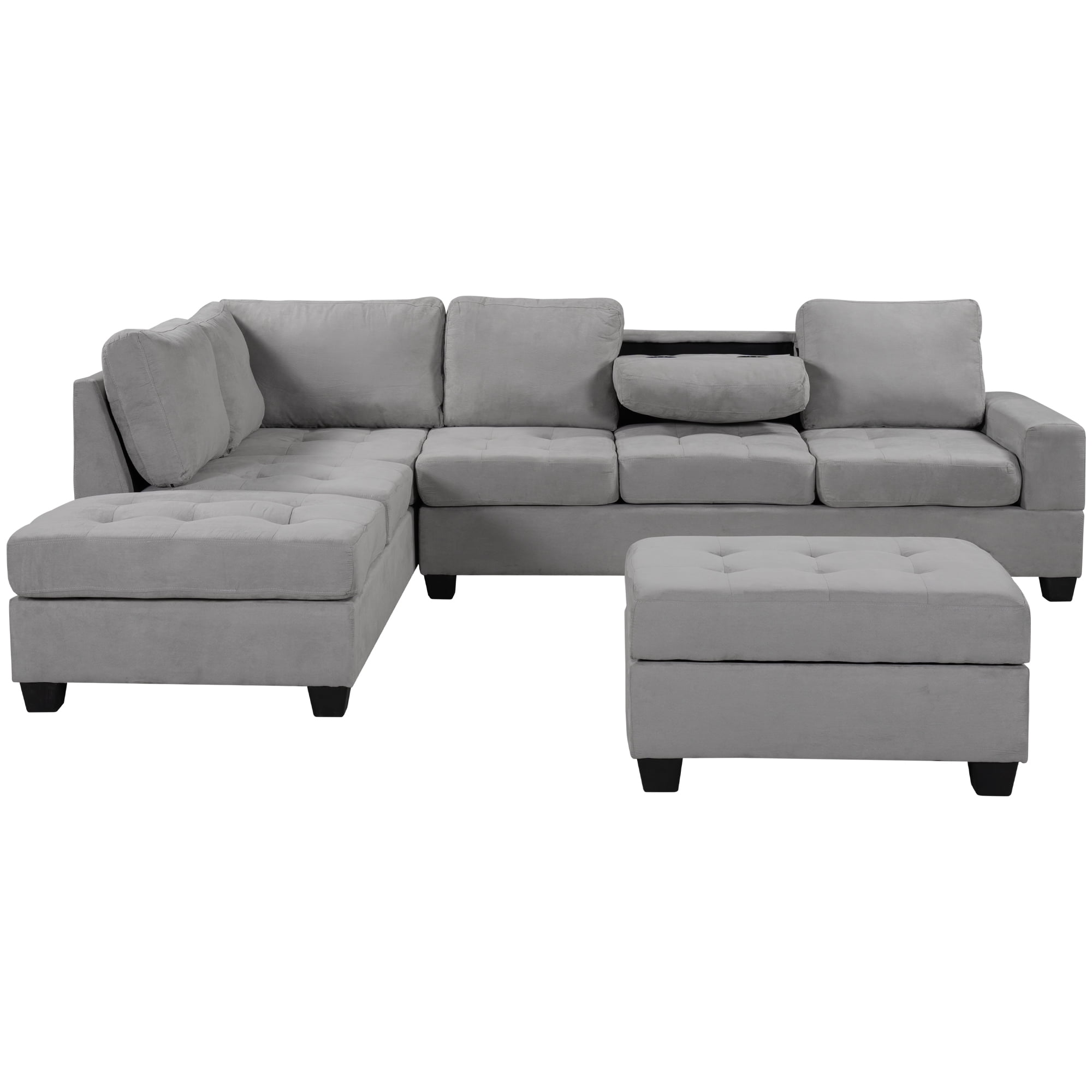 Convertible Sectional Sofa With Reversible Chaise L Shaped Couch Set With Storage Ottoman And Two Cup Holders For Living Room Walmart Com